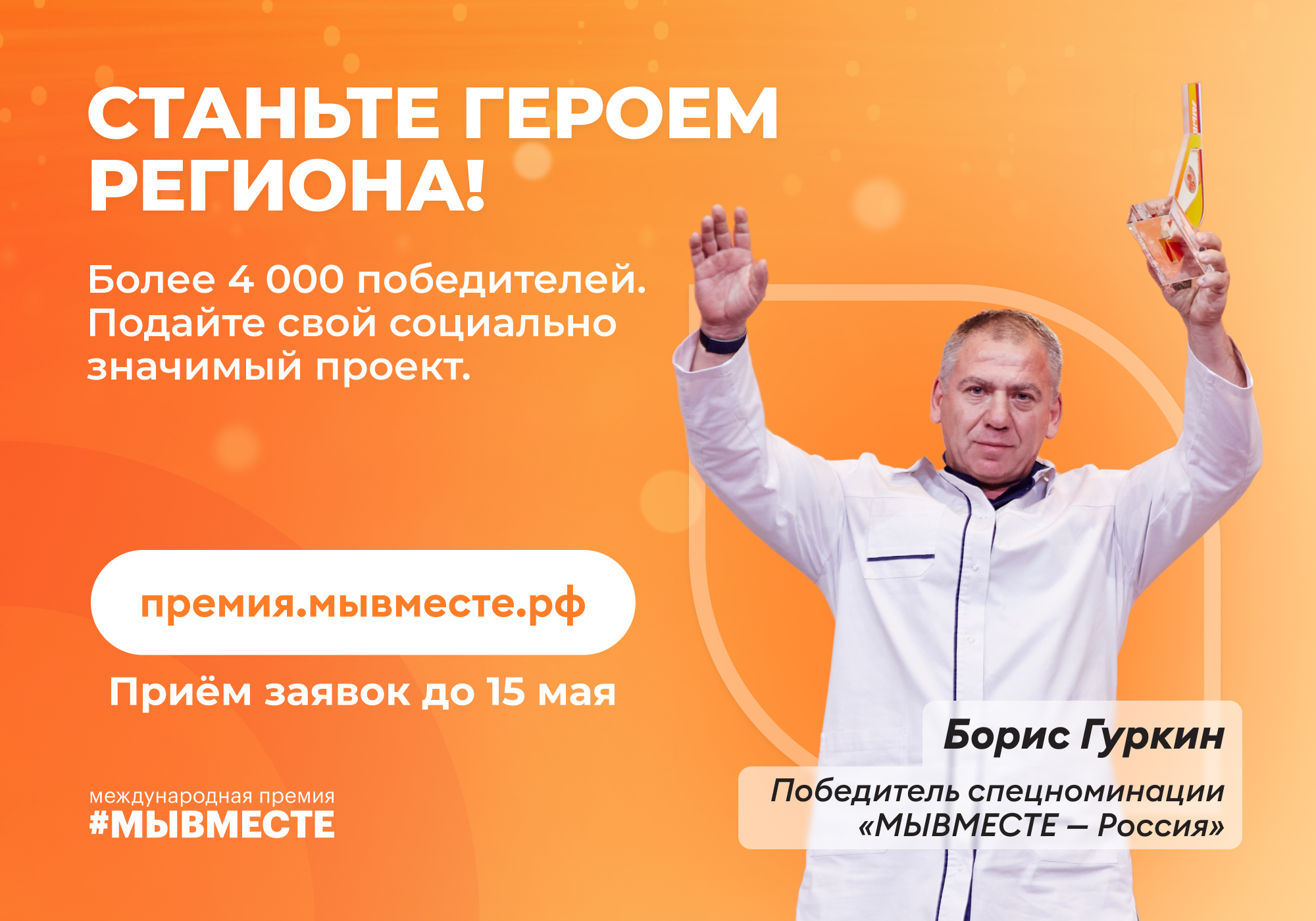 31.03.2023Старт Международной Премии #МЫВМЕСТЕ: получите поддержку своего проекта!
